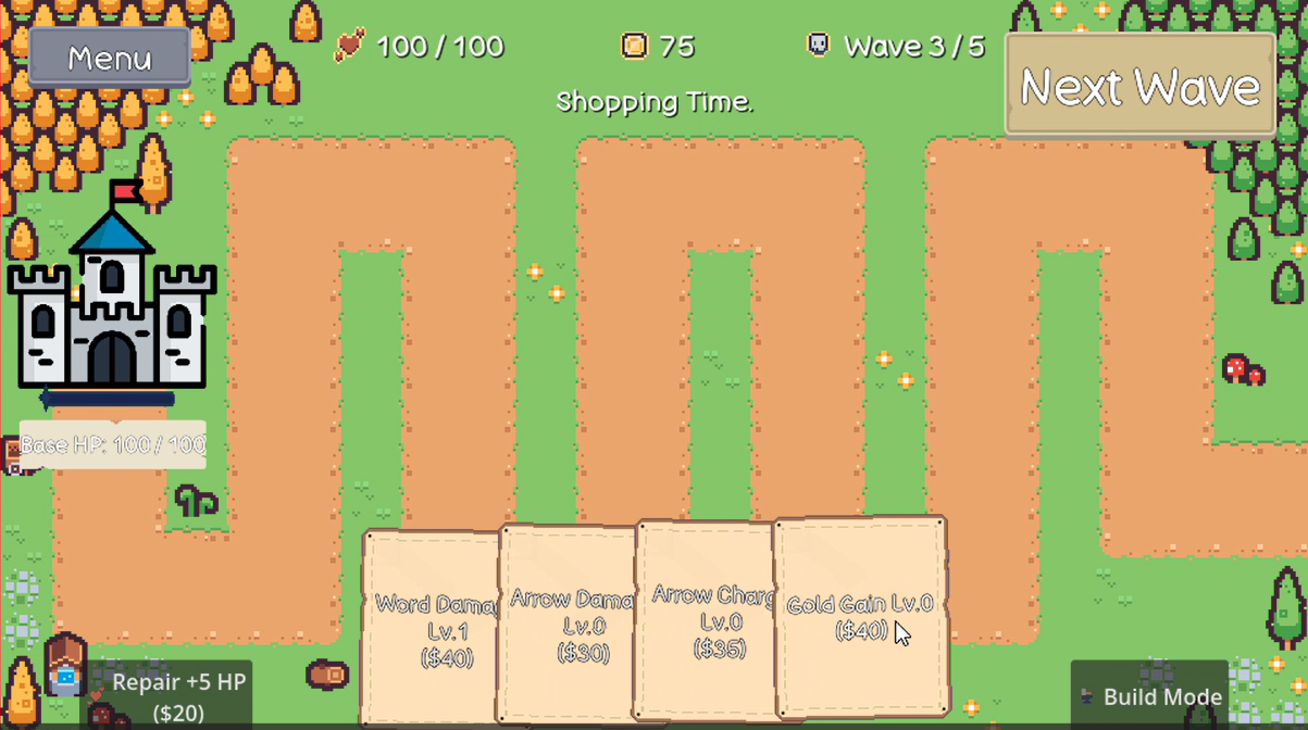 - Re-balanced enemies health, upgrade costs, and gold gain from enemies.